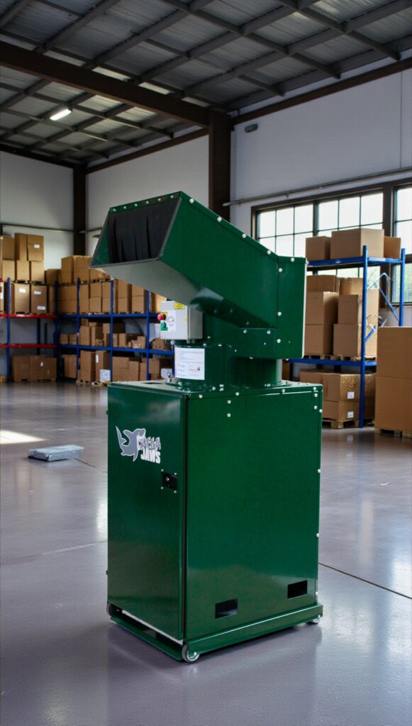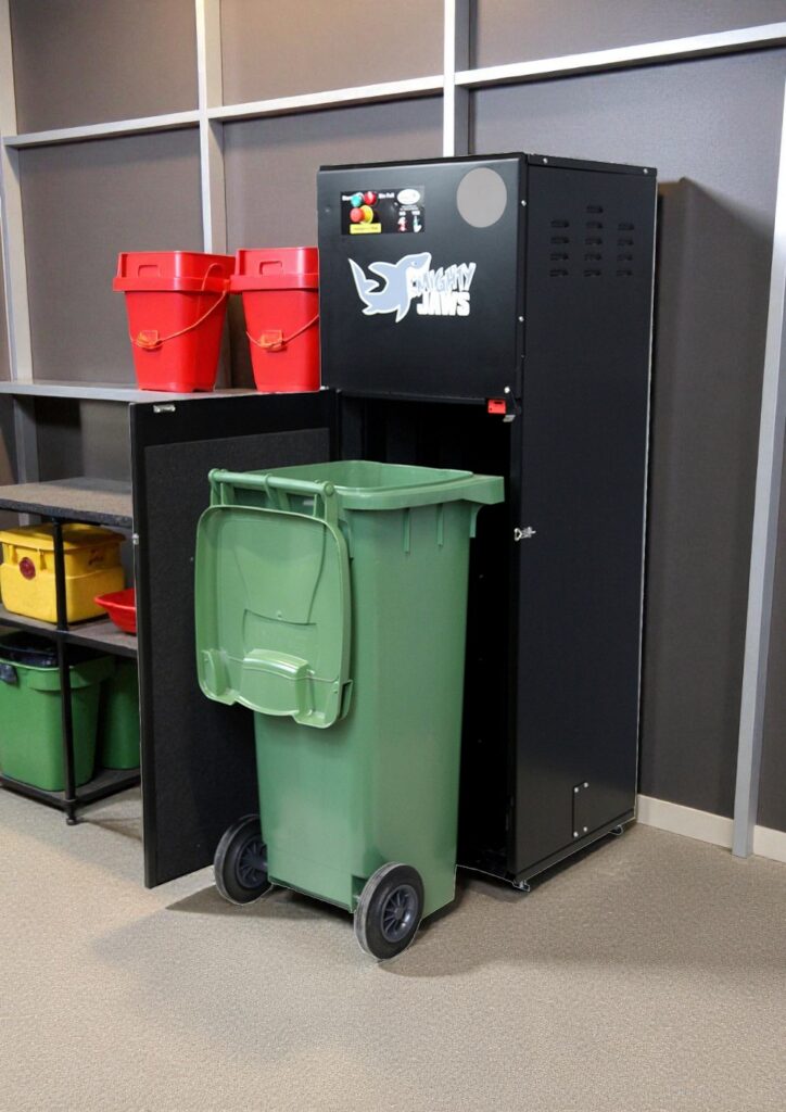 Designed for enclosed back-of-house areas, it reduces airborne particles while maintaining strong crushing performance.