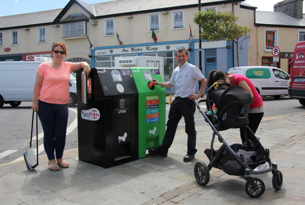 There is a history of Belmullet embracing new technologies and the installation of the SolarStreetBin™ products continues that trend. The Tidy Towns Committee in conjunction with Mayo County Council were eager to explore options for improving the ascetics and the efficiency of the litter collection service in the town. The IoT litter bins from PEL Waste Reduction Equipment were selected for that task and both compacting and non-compacting variants of the SolarStreetBin™ Installed on the 6th July 2018.